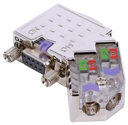 The bus connector EasyConn PB is used for the connection of PROFIBUS participants to the bus line. The fully visible diagnostic LEDs facilitate the installation considerably. Users can immediately check the status of bus activity, termination resistors, power supply and bus status. The integrated controller supports transmission rate of up to 12MBit/s.